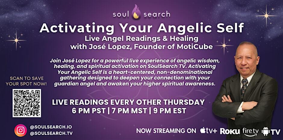 Join José Lopez for a powerful live experience of angelic wisdom, healing, and spiritual activation on SoulSearch TV. Activating Your Angelic Self is a heart-centered, non-denominational gathering awareness.